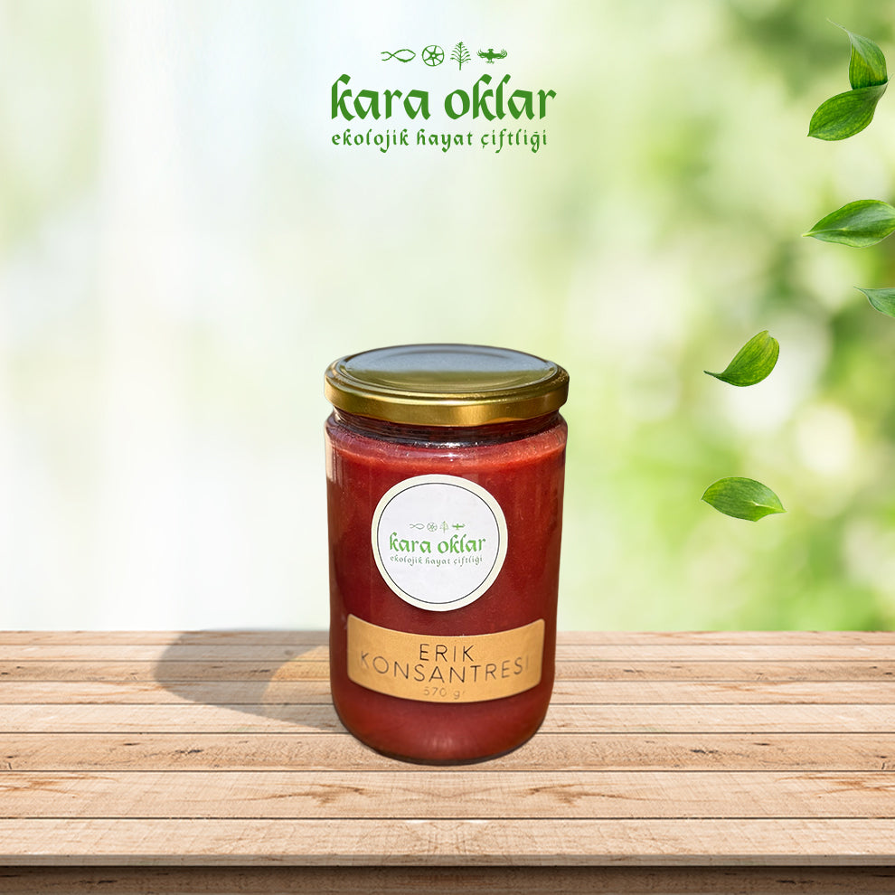 Demirci Köyü'nde yetişen eriklerden elde edilen bu konsantre, pestisitsiz üretim garantisiyle hazırlanmıştır. 1 litre konsantreden 3 litre erik suyu elde edebilirsiniz. Damak çatlatan nefasete ulaşmak için soğuk içiniz.